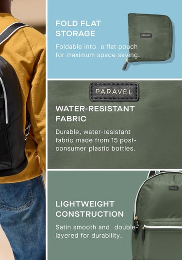 You can also use Paravel Fold-Up Bag is Lightweight, sustainable, and stylish, it packs flat but expands to full size for extra storage on the return trip.
